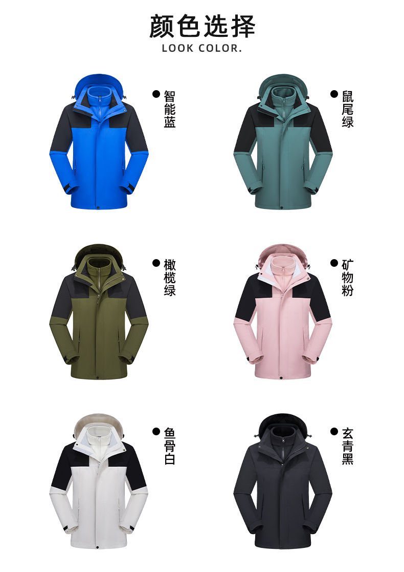 戶外保暖沖鋒衣訂做 男女同款戶外三合一沖鋒衣 定制咨詢電話:021-69131259