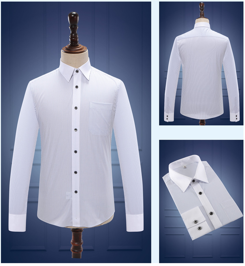 男士職業(yè)裝長袖條紋襯衫定制 樣品圖