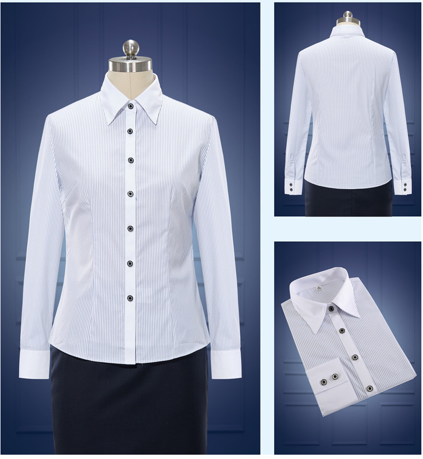 女士長袖職業(yè)裝條紋襯衫定制 樣品圖