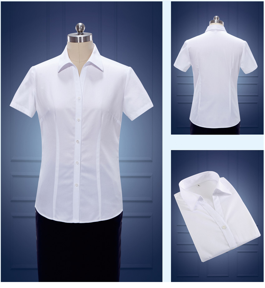 女士V領(lǐng)短袖免燙襯衫定制 樣品圖