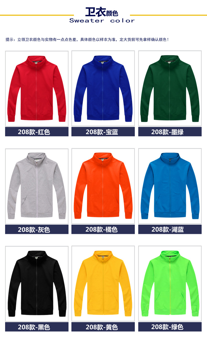 | 產(chǎn)品名稱:春秋薄款衛(wèi)衣定做 | 型號:208 |
