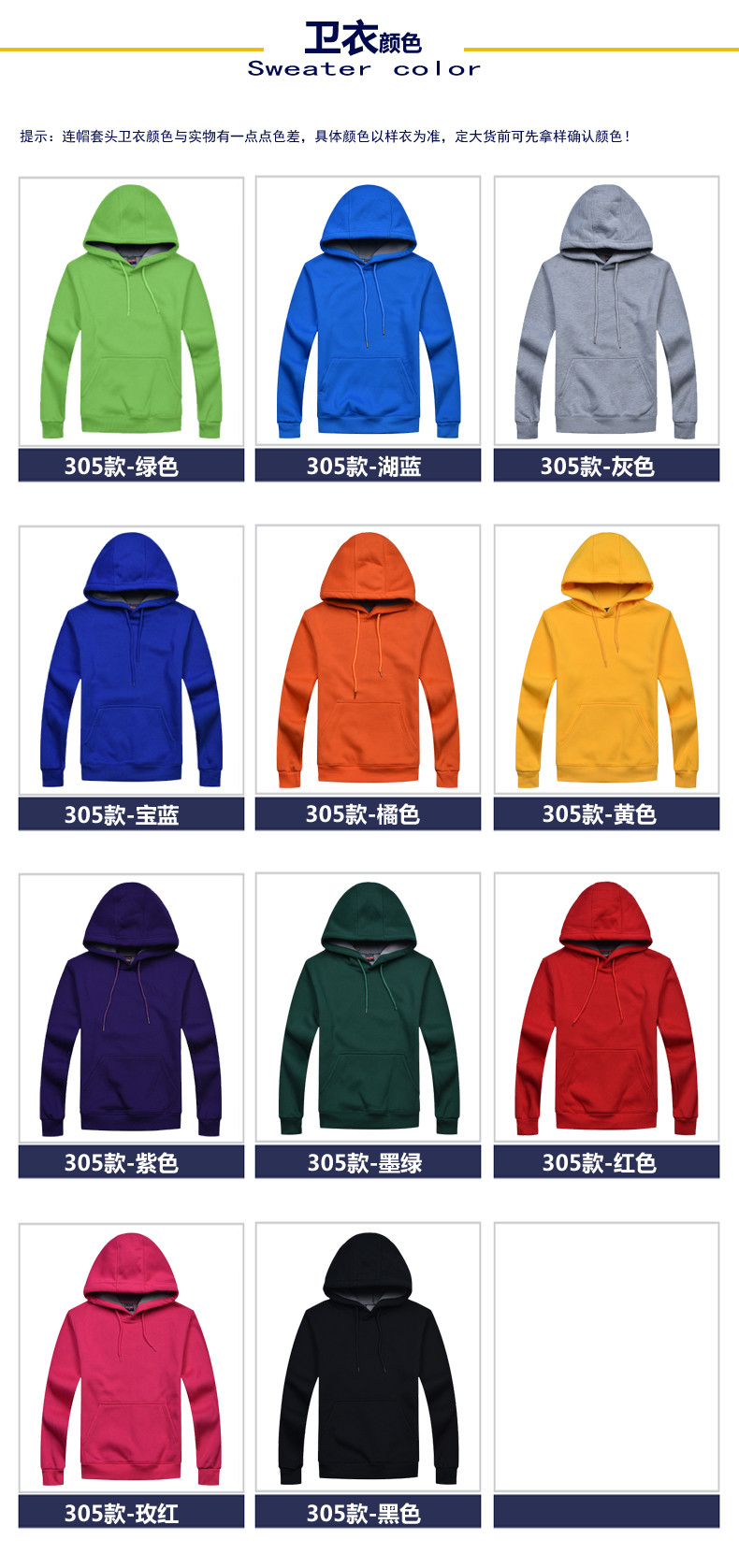 | 產(chǎn)品名稱:加絨連帽套頭衛(wèi)衣定做 | 型號(hào):305 |
